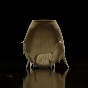 Серия тактильно-визуальных объектов «Артефакт» представляет собой скульптуры, наделенные утилитарной функцией в виде бокалов для прямого тактильного взаимодействия с пользователем.
