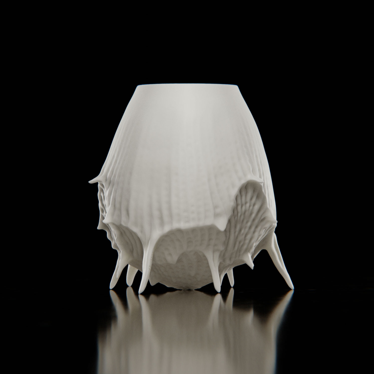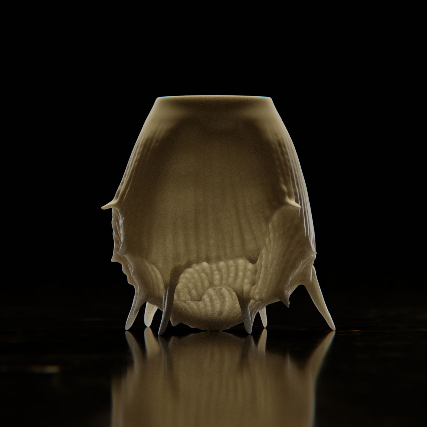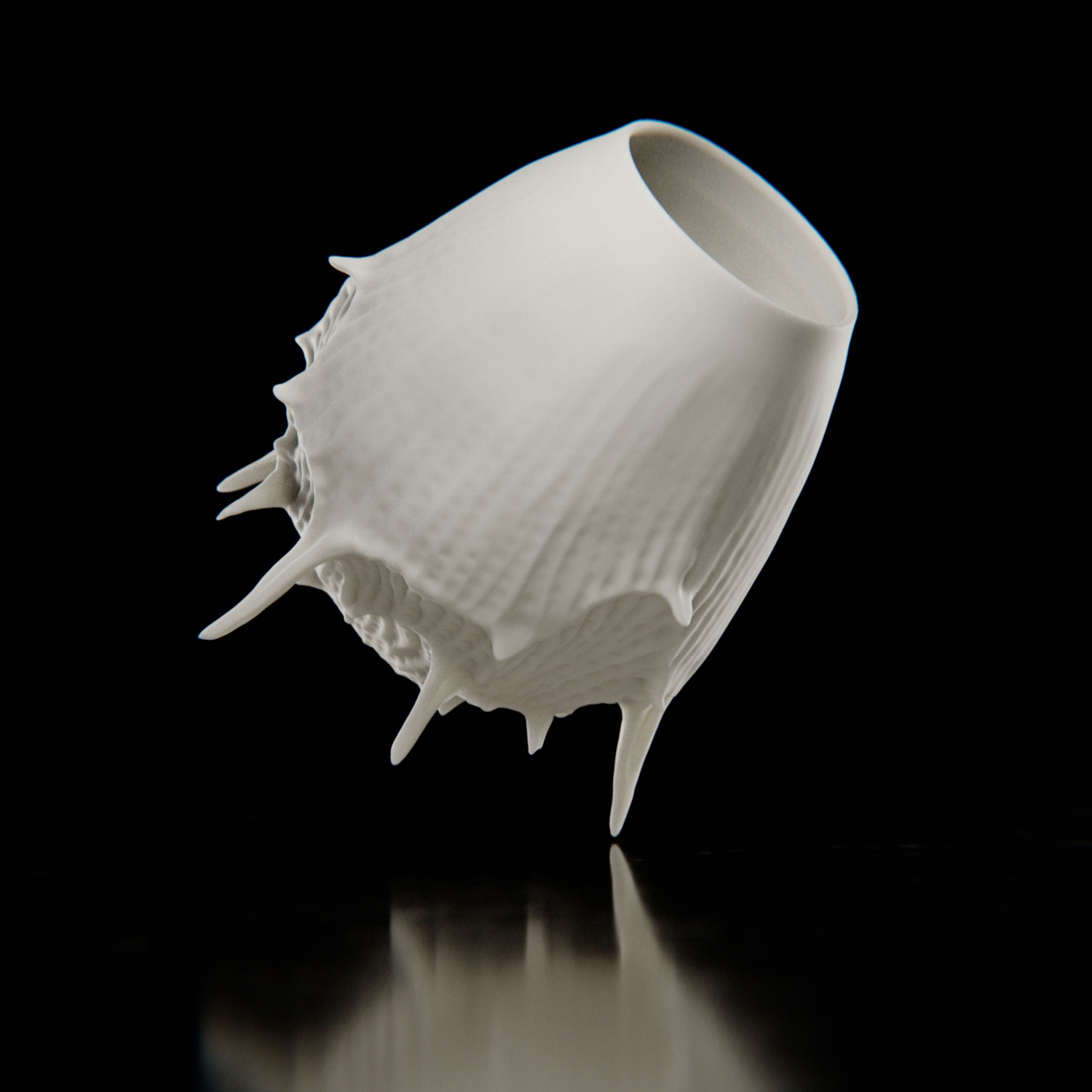 Серия тактильно-визуальных объектов «Артефакт» представляет собой скульптуры, наделенные утилитарной функцией в виде бокалов для прямого тактильного взаимодействия с пользователем.